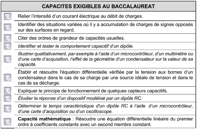 Mémoriser la fiche de synthèse 11-A-Charge et décharge d'un condensateur